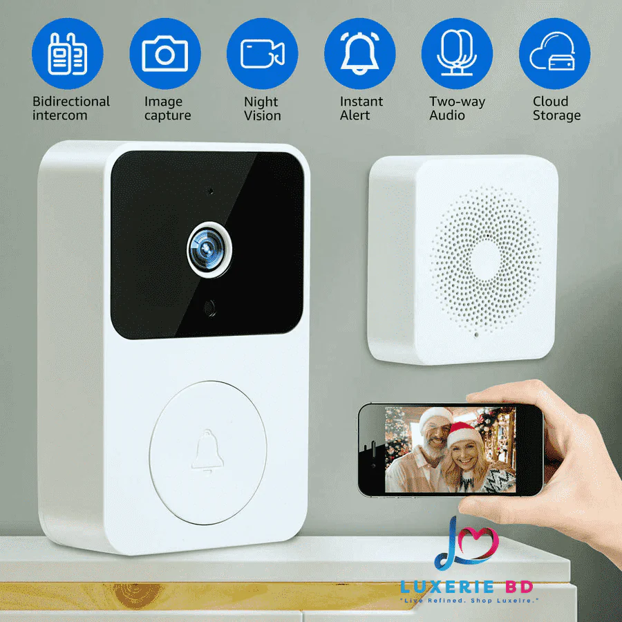 Luxerie BD নিয়ে এলো: Wifi Smart Video Doorbell with Battery আপনার বাড়ির নিরাপত্তায় নতুন সংযোজন—CE, FCC, RoHS সার্টিফায়েড এই স্মার্ট ডোরবেলটি দিচ্ছে ক্রিস্টাল-ক্লিয়ার ভিডিও, শক্তিশালী WiFi কানেকশন এবং টেকসই বিল্ড কোয়ালিটি।